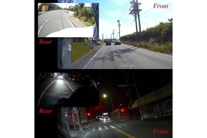 前後とも146°対角視野角で広範囲を鮮明に撮影。
