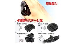 ヘルメットの形や使い方に応じた4種類のステーが付属されている。