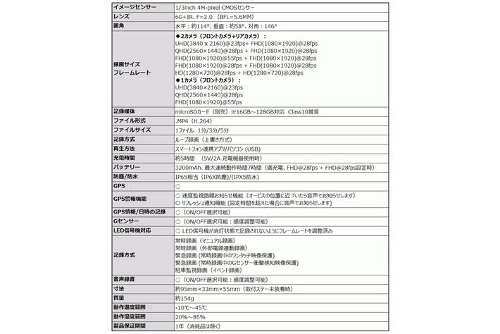 1台で前後2カメラ同時録画で前後とも400万画素の高画質。