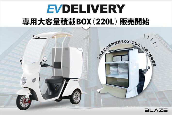株式会社ブレイズ(愛知県名古屋市、代表取締役:市川秀幸、以下ブレイズ)は、販売する電動3輪スクーター「EVデリバリー」用の専用大容量積載BOX(220L)について、新たなオプションとして追加販売を開始いたしました。