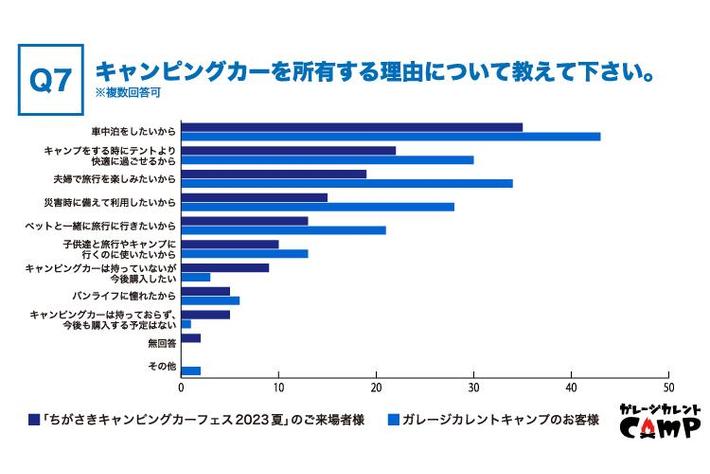 今回は、7月に開催された「第3回ちがさきキャンピングカーフェス2023夏」のご来場者様と、キャンピングカーの所有経験のある方のそれぞれにアンケート調査を行いました。