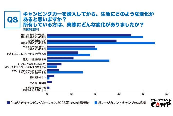 Q8.キャンピングカーを購入してから、生活にどのような変化があると思いますか?所有している方は、実際にどのような変化がありましたか?(※複数回答可)