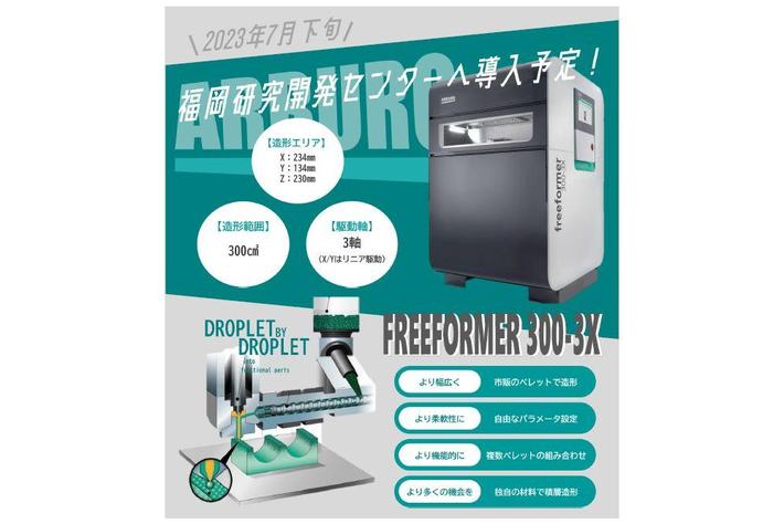 【ARBURG】FREEFORMER300-3X導入し従来の射出成形に使用されているペレット材が3Dプリント可能!2023年7月23日弊社福岡研究開発センターに設備搬入 設置完了。