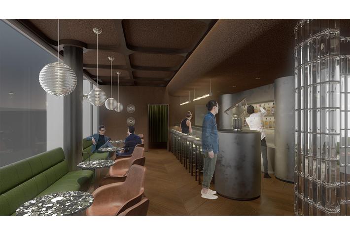 昼はリラックスしながら仕事に集中したり、個室で打ち合わせをしたり。夜はオリジナルカクテルやモクテルを片手にひとりの時間を楽しんだり、気の置けない友人たちとのパーティーに興じたり。また時には、ESCのクローズドなコミュニティで繋がる仲間たちとアイデアを交換することも。そんなイノベーティブな大人のための社交場が「The Lounge」です。スピークイージーの扉の奥には、「Tom Dixon」による洗練されたデザインのラグジュアリーな空間が広がります。