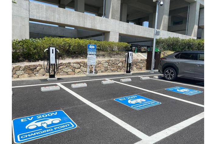ユアスタンド、モリコロパーク駐車場内に電気自動車(EV)充電サービスを提供。カード発行やアプリ登録なしで利用可能。