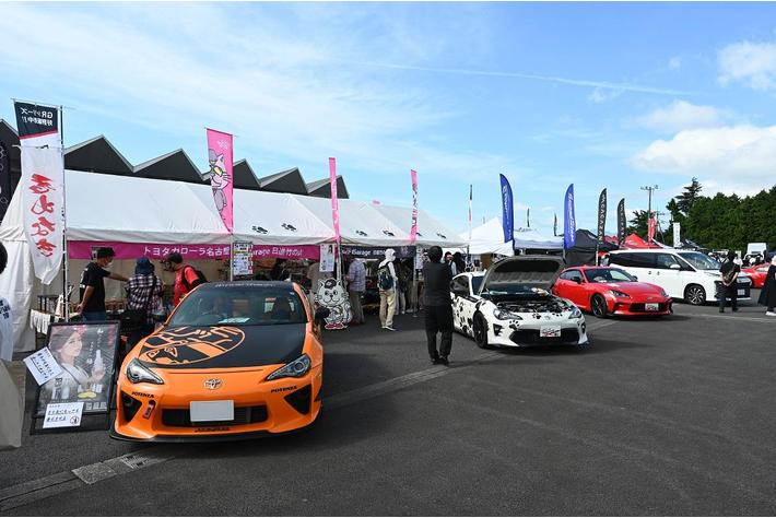 GR86やSUBARU BRZなどの各種グッズ、パーツ、アイテムのショップブースが多数出展し、様々なカラーリングに彩られ、チューニング・カスタマイズされたデモカーの展示も予定されています。