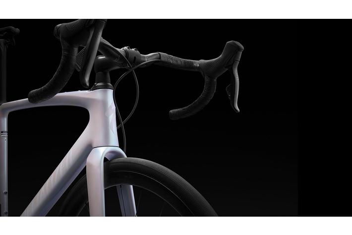 Roubaixのエンデュランスジオメトリーは、ライダーをバイクにただ乗せるのではなく、一体感の高いポジションを作ります。そのため、手、腕、肩の圧迫が軽減され、どんな道も安心して走れます。それでいて、山岳ルートの曲がりくねった下りを切り裂くように攻められます。この実証済みのパフォーマンスはそのままに、太いタイヤを履いたときにつま先のクリアランスを確保できるよう、フロントセンターを数ミリ延長しました。