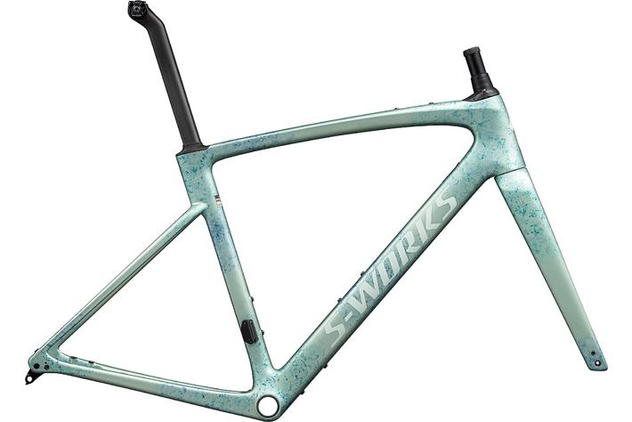 エンデュランスロードでありながら卓越した空力性能、優れたレスポンスと軽量性を兼ね揃えるRoubaix SL8。バイクの先端形状を改良して風の流れを最適化し、空気抵抗を4ワット削減。フォークやダウンチューブの形状を見直し、シートステーを風に当たらないようさらに低く配置しました。また、世界最軽量の市販バイクであるAethosから学んだことを活かし、新型Roubaixではレイアップを最適化して、フレーム重量を50g以上削減しました。形状による負荷の伝わり方をより深く理解するにつれ、多くの剛性レイヤーが不要に。ダウンチューブ自体の形状や、ダウンチューブとヘッドチューブやシートチューブとの接合部から、材料を大幅に取り除けました。また、シートチューブ周辺とボトムブラケット周辺の重量を削減し、FACT 12rカーボン(最高品質のカーボンブレンド)を用いて、さらなる軽量化とライドクオリティーの向上も実現しています。その結果、サイズ56cmのS-Works Roubaixの完成車重量は、箱から出した状態で7.3kgとなり、またも同クラス最軽量の立ち位置を確固たるものにしました。