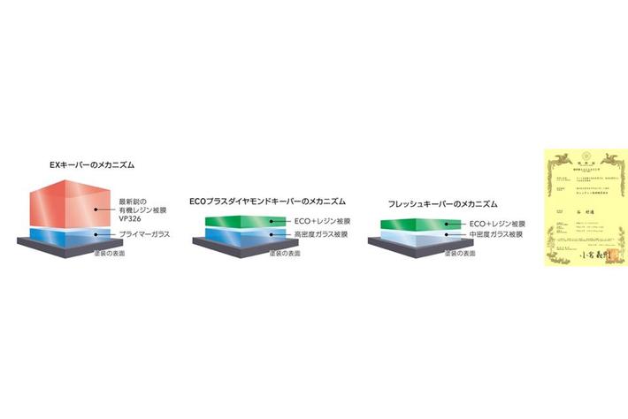 ガラス被膜+レジン被膜の重層の透明被膜が生んだ、「愛車のツヤと輝きを凌駕するボディガラスコーティング」。