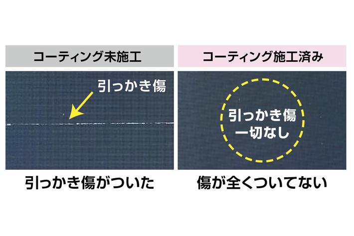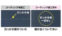 タッチパネルキーパーはKeePer独自の技術でタッチパネルをすり傷から守ります。一般財団法人「日本塗料検査協会」に依頼し、傷にどれだけ耐久性があるか検査した結果、被膜がしっかりとモニターをひっかき傷から守ることが証明されました。