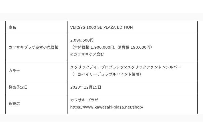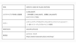 株式会社カワサキモータースジャパン(本社:兵庫県明石市、代表取締役社長:桐野 英子)が展開するカワサキプラザネットワークでは、「Z900」「VERSYS 1000 SE」のNEWカラー&グラフィックの登場に合わせ、各モデルの機能性をさらに高めた「Z900 PLAZA EDITION」および「VERSYS 1000 SE PLAZA EDITION」を発売いたします。