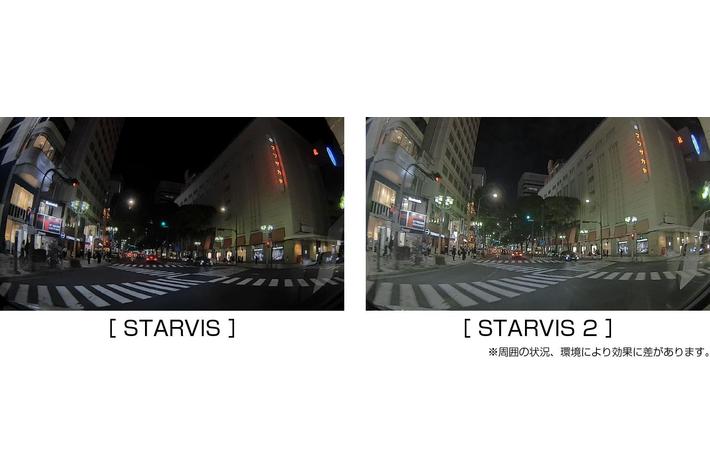 本機はソニー社製CMOSセンサー「STARVIS 2」を搭載し、低照度性能向上とダイナミックレンジ(撮影できる明暗差の範囲)が特長で、低照度でも今まで以上にノイズの少ない映像が記録できます。またトンネル出口付近など、明暗のあるシチュエーションでの視認性の向上により、綺麗な映像の記録(及び再現)が可能となります。さらに、カメラ接続ケーブルが片側ストレート端子のため、配線しやすく、様々なタイプの自動車に設置可能となります。
