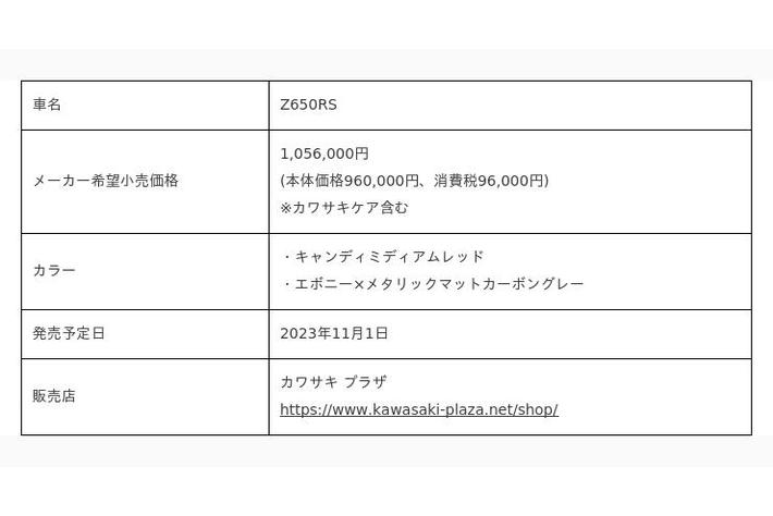株式会社カワサキモータースジャパン(本社:兵庫県明石市、代表取締役社長:桐野 英子)は、柔らかな曲線基調のデザインと、パワフルなエンジンで走りを楽しめるスポーツモデル、「Z650RS」のNEWカラー&グラフィックモデルを2023年11月1日に発売いたします。