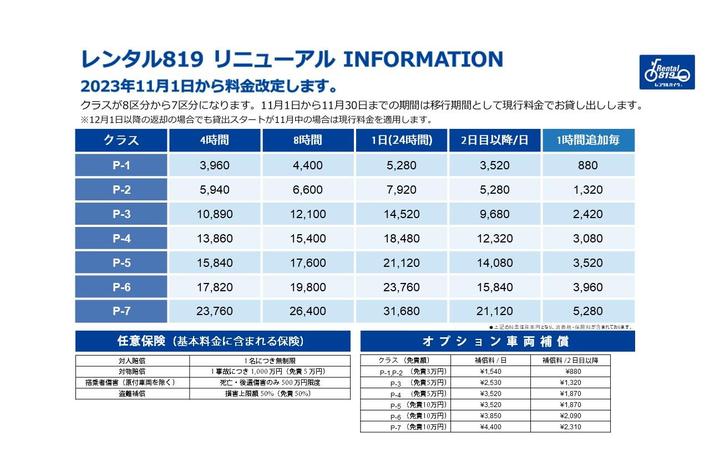 2023年11月1日~車両クラスとクラスごとの料金を変更いたします。