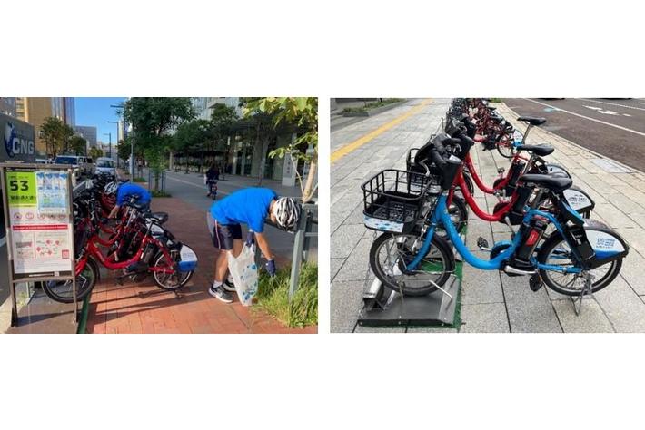 札幌市内のシェアサイクルポートにごみ袋ケースを設置し清掃活動も