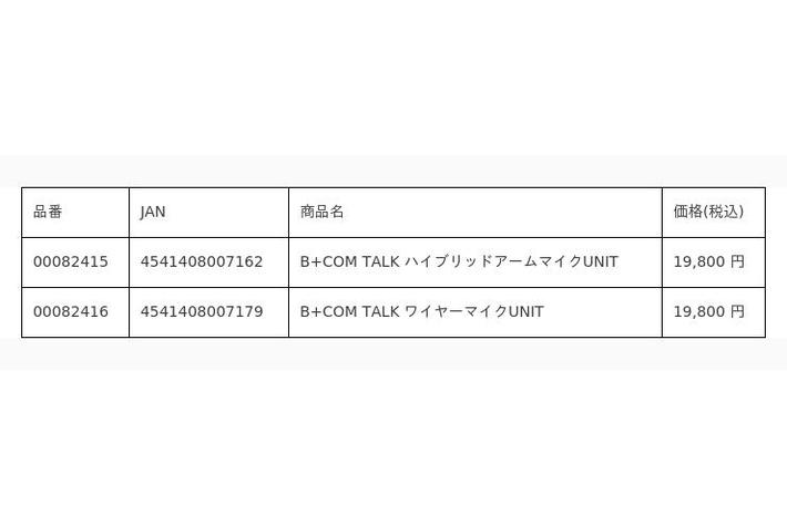 B+COM TALK はハイブリッドアームマイクUNIT とワイヤーマイクUNIT の2 種類のパッケージからお選びいただけます。