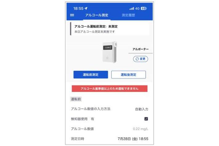 また、アルコール検知器での検査が未実施の場合、または検査でアルコール量が基準値を超えた場合は、スマートフォンでドアを解錠できず、物理的に運転をさせない環境を実現します。そのため、アルコール検査実施率の向上や飲酒運転の抑制などにつながり、コンプライアンス強化に寄与します。