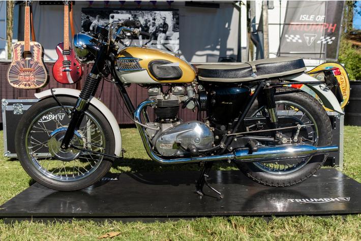 このバイクは、アラバマ州バーミンガムで開催された『2023年 バーバーヴィンテージモーターサイクルフェスティバル』にて、トライアンフUSAのマーケティングディレクター、アダム・ヴァンダーヴィーンが発表しました。エルヴィスが購入した同世代の1965年製Bonneville のオリジナルを含む、数々の歴史的なトライアンフとともにバーバーモータースポーツミュージアムから貸し出され、『Isle of Triumph』に展示されました。