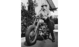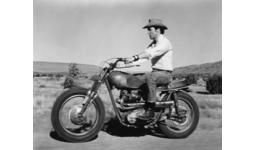 歴史上最大のセールスを記録したソロアーティスト、ハリウッドで31本の映画に出演した映画スターでもあることが、それを物語っています。そしてエルヴィスは無類のバイク愛好家でもあり、映画の中でもバイクを乗りこなしています。例えば、1968年のコメディウエスタン映画『Stay Away Joe』では、レッドとシルバーのTriumph 650 Bonneville「Desert Sled」に乗っているシーンがあります。