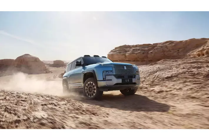 オフロードSUV「U8」はプレミアムブランド「仰望(ヤンワン)」の最新モデルです。独立式の4モーター駆動が可能な「e4 プラットフォーム」が採用されており、その場で360度回転するタンクターンを行うことが可能です。U8の最高出力は1100ps以上で、0~100km/を3.6秒で走り抜けることができます。