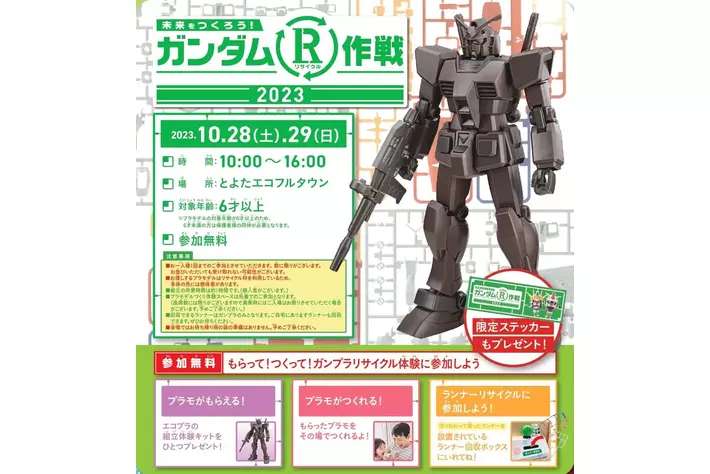 リサイクル材を使用したガンプラ「エコプラ」の配布と組立体験などができる「ガンダムR作戦2023」も同時開催!