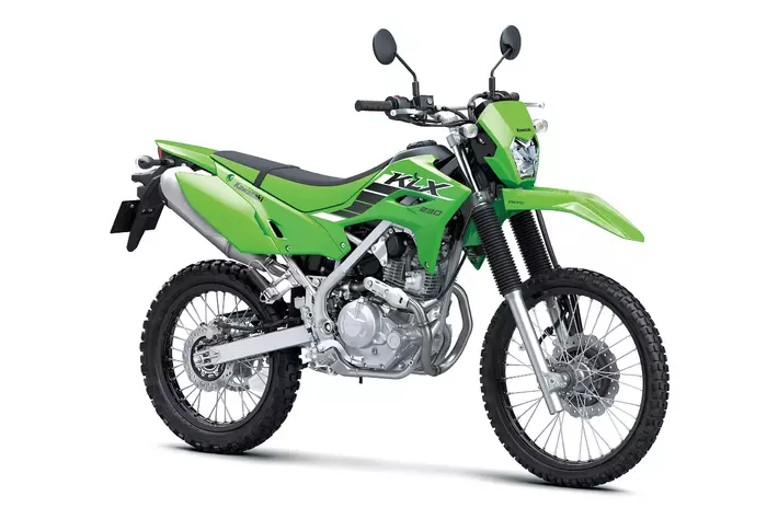 ビギナーからベテランまで幅広いライダーに向けたデュアルパーパスモデルKLX230。フレームとサスペンションの最適化により、良好な足つき性と前後ホイールトラベル、シート厚の増加を実現、オフロード走破性と快適性を向上させています。また、ヘッドライトの小型化や、レース専用モデルであるKXシリーズを彷彿とさせるカラーとスタイリングを採用し、スポーティな印象を付加しています。さらに、状況に応じたオフロード走行を可能にするABSオフスイッチ、新しいライディング体験を提供するスマートフォンコネクティビティを搭載。オフロードライディングを楽しめるモデルとなっています。