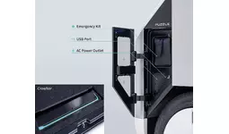 AC電源などの電力供給機能により、通常時はもちろん、電力インフラが断線するような非常時にも、電力を供給することが可能です。また、ファーストエイドキットやバールなど、緊急時に役立つ装備も常備しています。