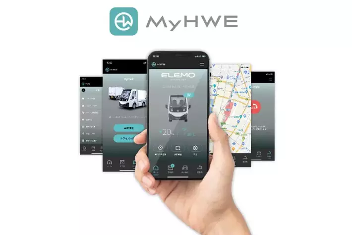 「MyHWE」は、独自のプラットフォームサービスによる情報基盤を持つモバイルアプリケーションです。本アプリケーションを通じ、モバイルからEVのバッテリー残量・充電のステータス・車両の現在地の確認が可能となります。