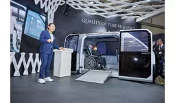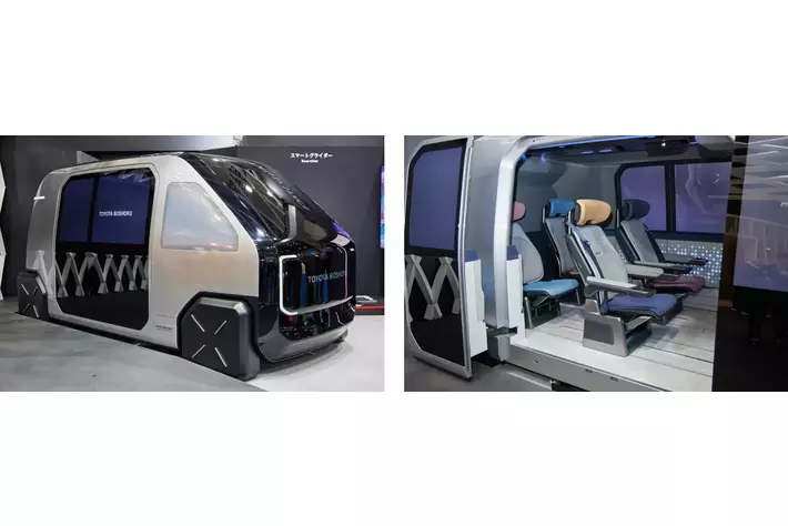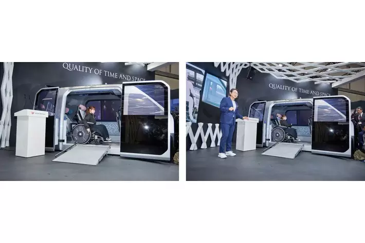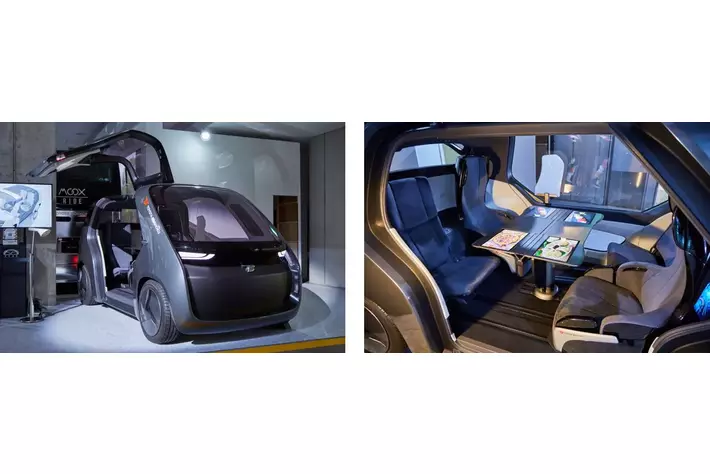 「当社はモビリティーの新市場として期待される自動運転やMaaSに向けた価値創造にも注力。今回展示の自動運転レベル4を想定したライドシェア空間「MX221」です。