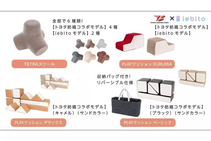 人気シリーズ「PLAYクッション」を手がける愛知のブランド「iebito(イエビト)」と「トヨタ紡織」のコラボレーション企画。「Makuake」での先行販売の結果を受けて、いよいよ10月27日(金)より一般販売を開始。熟練の職人の手で生まれ変わった、特別な「アップサイクル商品」をお届けします。