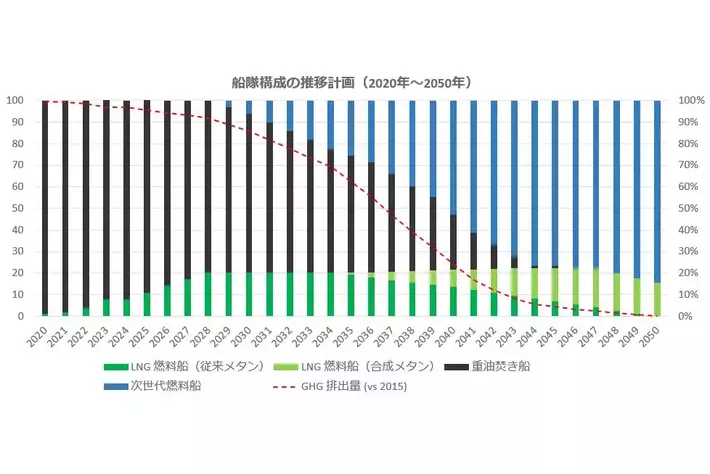 当社自動車専用船 船隊構成の推移計画(2020年~2050年)(2022年3月時点)