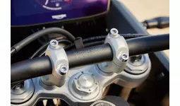 新しくなったラバーマウントのハンドルバーは、さらに快適な乗り心地を実現します。今回、Rally Proのハンドルバーポジションは15mm後退しました。この僅かなリーチの短縮によって、座っているときの快適性が向上したのと同時に、オフロード走行の際のスタンディングポジションでのコントロール性とバイクの敏捷性が高まりました。