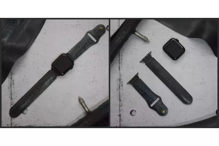 そのなかで日本アップサイクル協会では、トレジャーハンティングのアイディアの1つから、タイヤのゴムチューブの素材を活かしたApple Watchのバンドを試作しました。