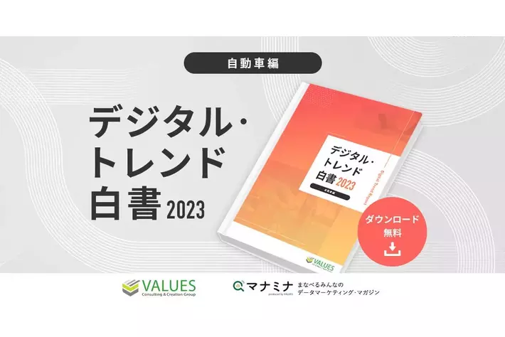 インターネット行動ログ分析によるマーケティング調査・コンサルティングサービスを提供する株式会社ヴァリューズ(本社:東京都港区、代表取締役社長:辻本 秀幸、以下「ヴァリューズ」)は、運営するデータマーケティング・メディア「マナミナ」にて2023年に公開した調査から厳選し、国内消費者のデジタル動向をまとめた「デジタル・トレンド白書2023 - 自動車編」を公開しました。