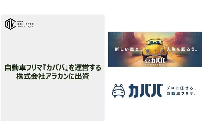 New Commerce Ventures株式会社(本社:東京都品川区、代表取締役:松山馨太・大久保洸平)は、このたび中古車の個人売買プラットフォーム『プロに任せる、自動車フリマ。カババ』を運営する株式会社アラカン(以下、アラカン)に出資しましたので、お知らせいたします。