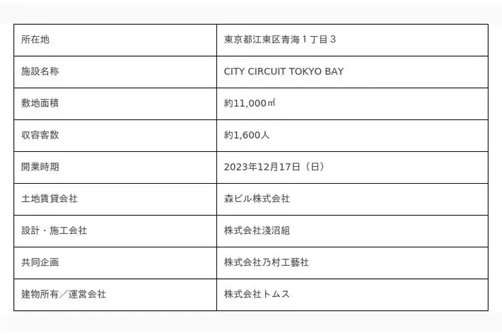 「CITY CIRCUIT TOKYO BAY(シティサーキット東京ベイ)」 グランドオープンが12月17日(日)に正式決定