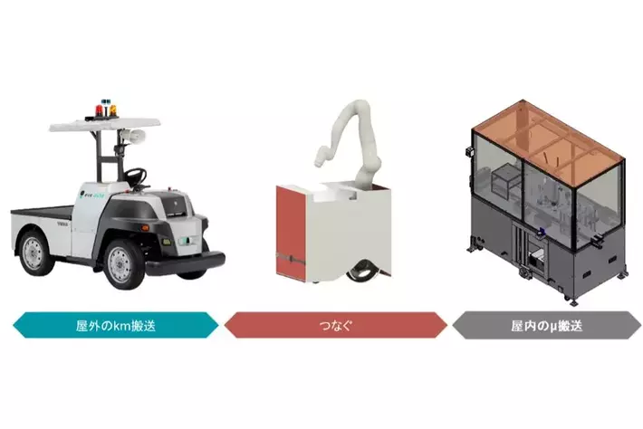 展示ブースでは、eve auto(R)の実際の動きや操作方法、導入のプロセスやサポートおよび自動運転保険などのサービス内容、また実際のeve auto(R)導入企業様の事例など、工場や物流施設で屋外搬送の自動化を検討する来場者の方々へ詳しくご説明します。さらには、”μ to km”次世代搬送トータルソリューションの新たなスタイルとして、eve auto(R)が運んだワークを、ヤマハ発動機の開発する協働ロボット×組み立て型タフネス AGV「COW-el」が受け取り、さらにリニアコンベアモジュール「LCMR200」とスカラロボット、ビジョンシステムなどで構成される検査機に投入するまでの搬送全体の自動化デモンストレーションを実施します。