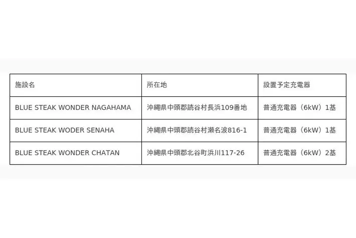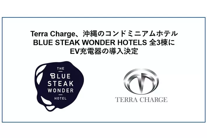 EV充電インフラ事業「Terra Charge(読み:テラチャージ)」を展開するTerra Motors株式会社(本社:東京都港区、取締役会長:徳重徹 / 代表取締役社長:上田晃裕、以下「テラモーターズ」)は、沖縄県の宿泊施設「BLUE STEAK WONDER HOTELS」の駐車場へのEV充電器の導入が決定しましたことをお知らせいたします。2024年度中に「BLUE STEAK WONDER HOTELS」3棟(3棟所在地:沖縄県北谷町および読谷村)の駐車場に全4基のEV充電器を設置する予定です。