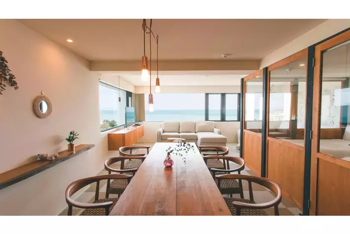 独創的な客室デザインはナチュラルな空間で、落ち着いた雰囲気。バスルームを2つ配したグループ滞在も快適な機能性と、どこにいても居心地が良く、海と空の景色を眺めながら「ずっとここに居たい」と感じる客室となっております。
