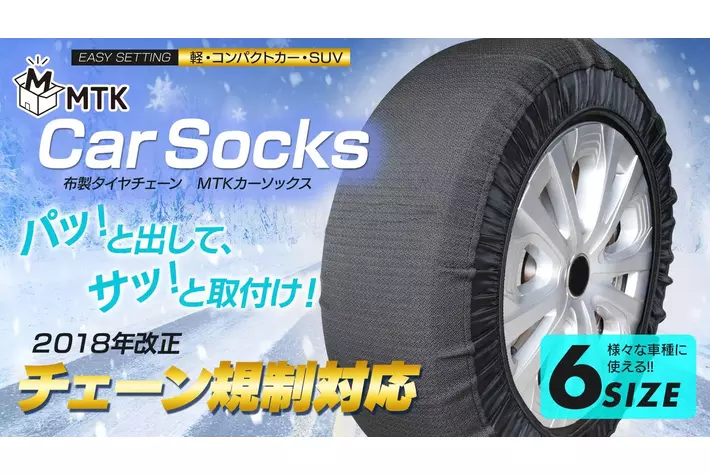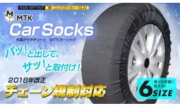 【新商品】急な積雪時に役立つ、コンパクト収納の布製タイヤチェーン『MTKカーソックス』がMakuakeでクラウドファンディング開始!