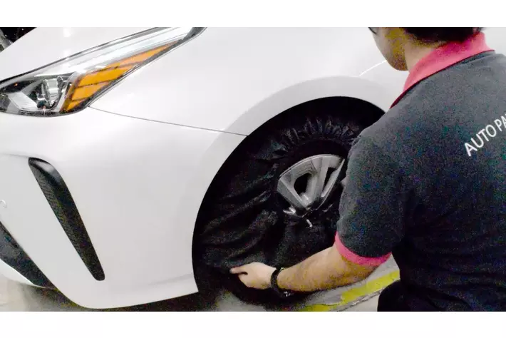 装着はジャッキなどの道具は一切不要で、靴下のようにタイヤにかぶせるだけです。