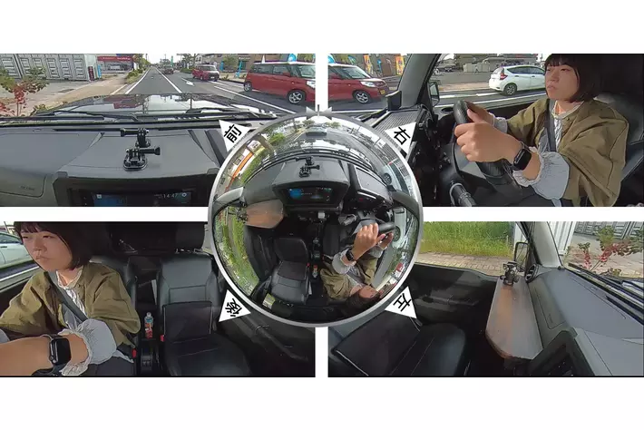 走行中の車内外を360°撮影することができるので、通常のドライブレコーダーでは撮りきれない「横方向からの突然の飛び出し」や「後方からの無理な追い抜き」なども、ほぼ死角なしで逃さず記録することができます。