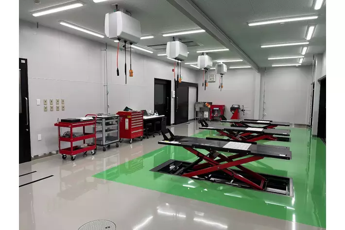 テクニカルセンターでは、お客様に安全で、安心なモーターサイクルライフを過ごしていただくため、明るく作業のしやすいスペースを確保しています。