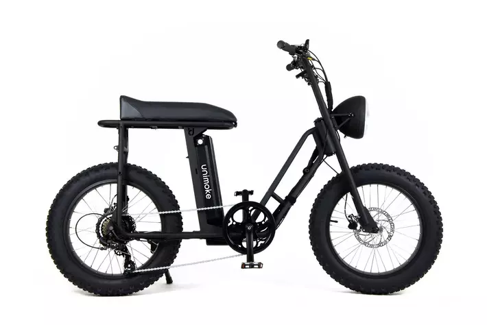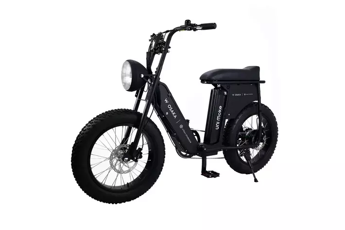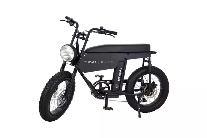 Urban Drivestyle(アーバンドライブスタイル)の ファーストモデルであるUnimoke MK(ユニモークMK) は、ロングシートが特徴的なクラシックバイク型電動ア シスト自転車です。一見バイクにしか見えないそのクー ルなデザインは、ブランドのプロトタイプとして絶大な 人気を誇ります。