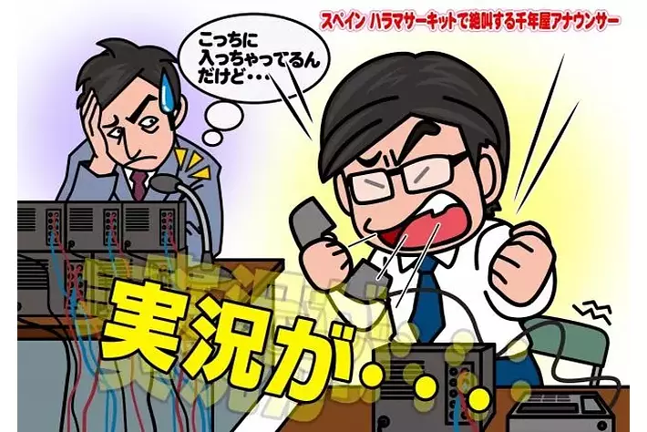 なんと隣の放送席で実況をしていたWOWOWの放送ブースまで『千年屋』の大声が入り込んでしまい、