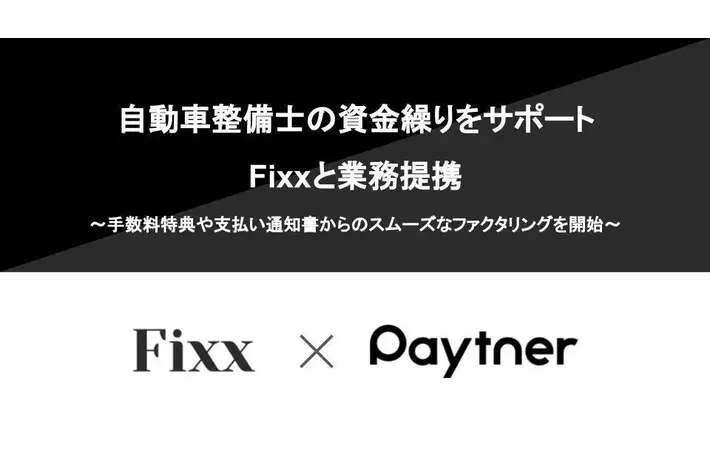 「ペイトナー ファクタリング」を提供するペイトナー株式会社(本社:東京都港区、代表取締役:阪井優、以下ペイトナー)は、自動車の出張整備サービスを全国展開する株式会社Fixxと業務提携に至りました。