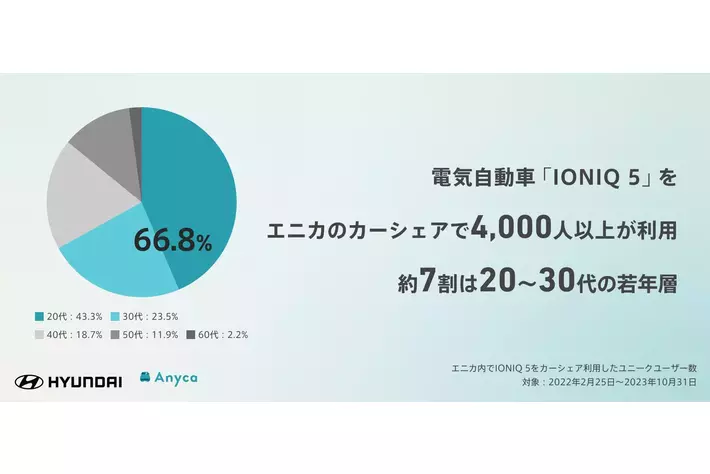 *1 2022年2月25日~2023年10月31日にエニカでHyundai「IONIQ 5」をカーシェア利用したユニークユーザー数