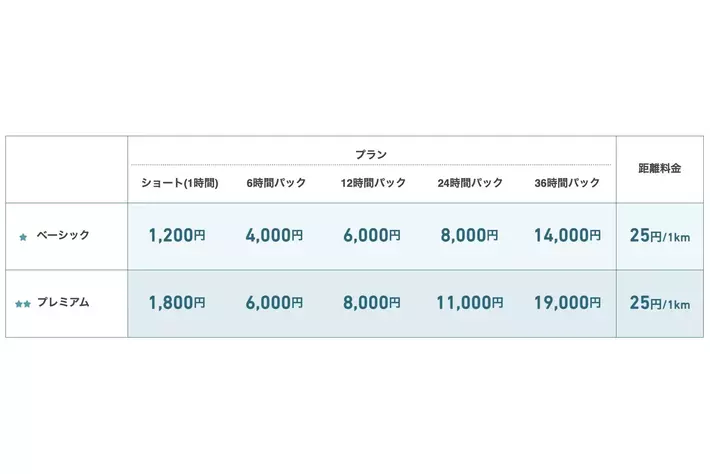 ▼Anyca Official シェアカー クリーンエネルギー車 料金表