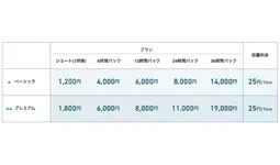 ▼Anyca Official シェアカー クリーンエネルギー車 料金表