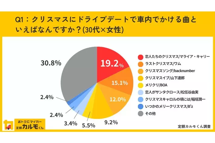 今回の調査により、クリスマスのドライブデートでかけたい曲は、20代と30代で異なることがわかりました。一方、世代を通して人気の曲には洋楽が多く、クリスマスの定番ソングとして浸透しているようです。